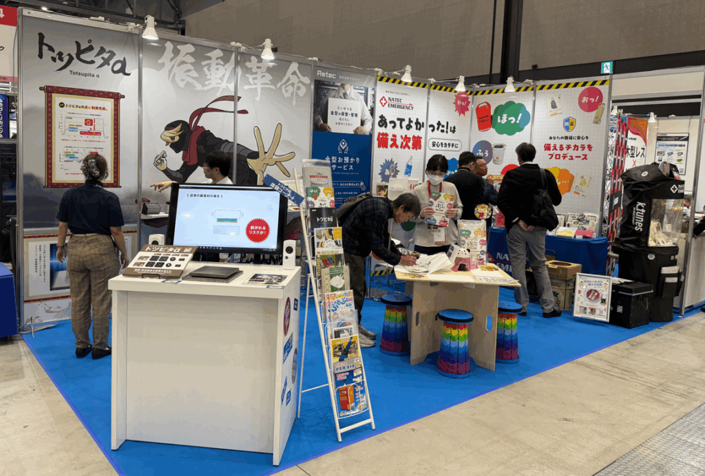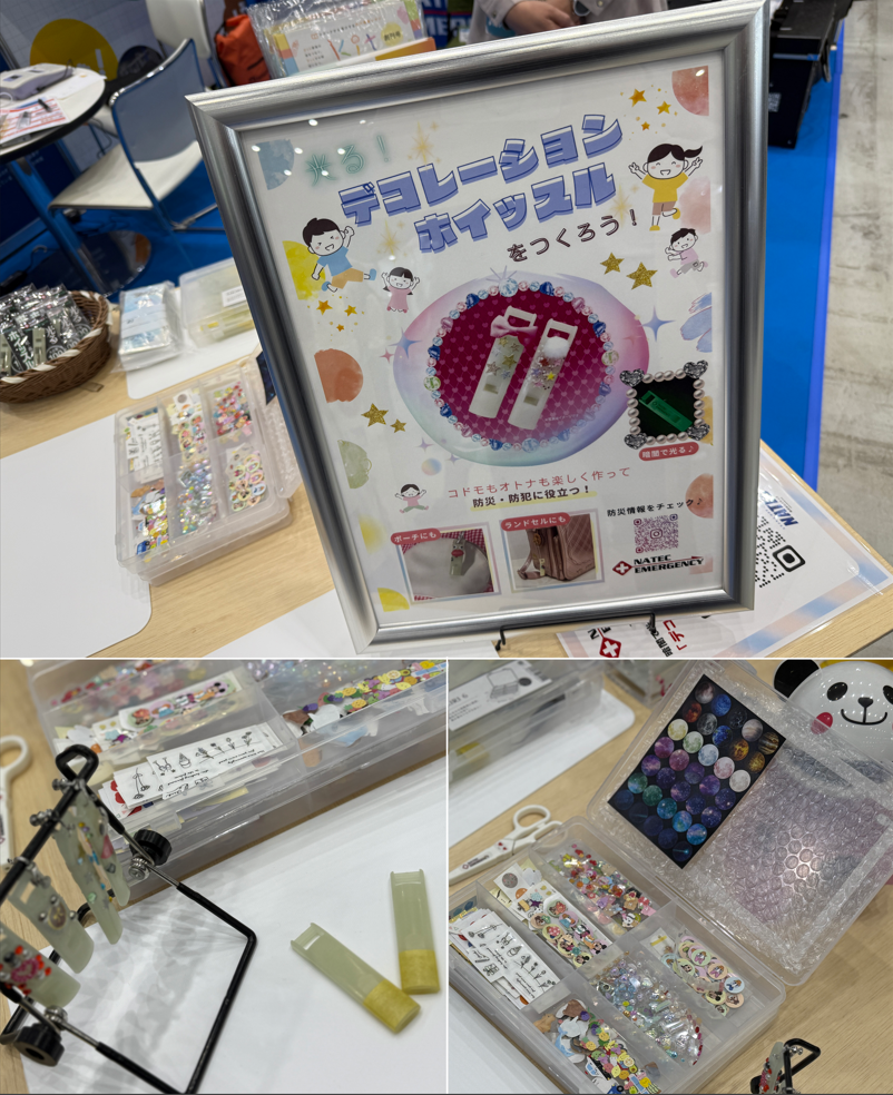 防災商品をはじめ、振動革命「トツピタα」、デコレーションホイッスル制作コーナーを展示しました!