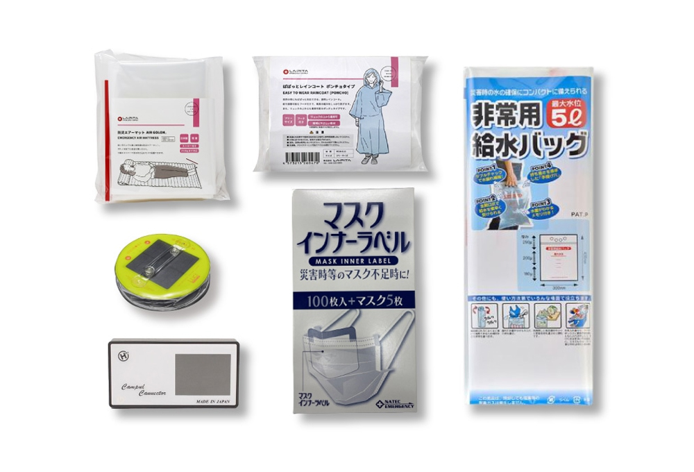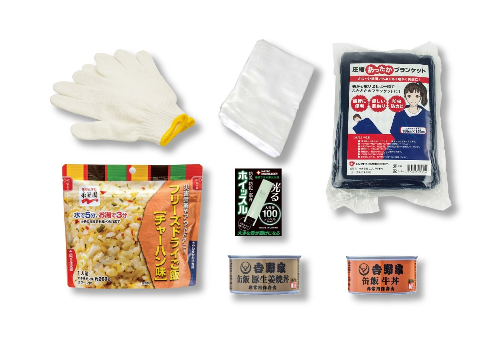 必要なものをご自身で追加して頂くことで一人一人に合った防災セットが完成します。