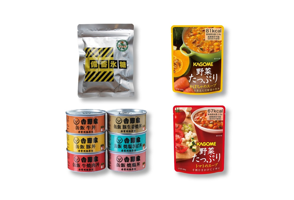 必要なものをご自身で追加して頂くことで一人一人に合った防災セットが完成します。